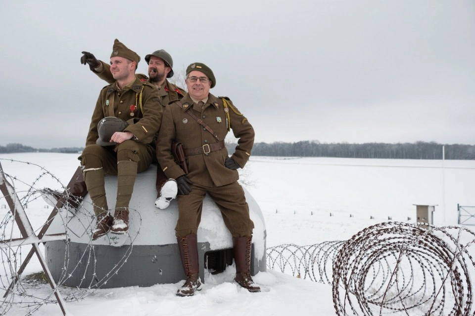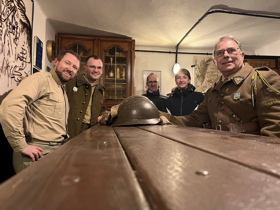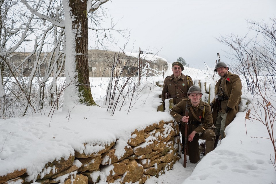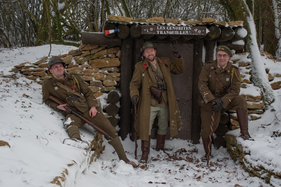 Avec talent, notre jeune bénévole Charlotte a fixé sur la carte mémoire de son reflex quelques très beaux clichés inspirés de photographies d'époque prises sur le A5 Bois du Four ou dans le secteur. Un grand bravo à elle pour cette première expérience, difficile de rester sérieux avec nos loustics en goguette Alain, Michaël et Stéphane !